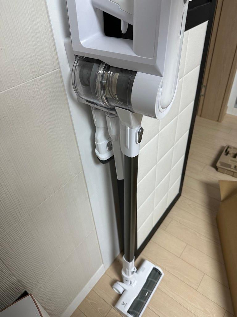 - 가벼운 무게 (1.54kg)와 휴대성: 한 손으로도 충분히 들고 청소할 수 있는 1.54kg의 가벼운 무게는 청소의 피로도를 현저히 낮춰줍니다. 특히 손목에 부담 없이 천장이나 높은 곳 청소 시 빛을 발합니다. 깔끔한 화이트 컬러와 세련된 디자인은 집안 어디에 두어도 인테리어를 해치지 않았습니다.